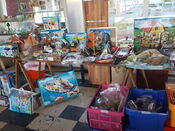 Da aufgrund der Baumaßnahmen nicht wie gewohnt Platz in der Schule war, fand die Annahme am Freitag in 4 Gruppen statt. Direkt im Anschluss begann das Basarteam mit dem Auspacken, Sortieren und Aufbau der Spielzeuge und Kleidungsstücke. Aufgrund der Menge der abgegebenen Kisten dauerte dies wie immer bis in die späten Abendstunden.