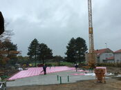 es tut sich wieder einiges auf unserer Baustelle: Das Fundament des Kindergartens ist mittlerweile gegossen. Unübersehbar wurde auch ein Kran zur Unterstützung bei den kommenden Arbeiten aufgestellt. Der Technikanbau vor der Schule steckt zwar noch in den Kinderschuhen, wächst aber stetig.