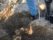 Im Frühjahr diesen Jahres waren wir schon einmal auf dem Hof Kobbe in Schwüblingsen, um auf einem Feld unsere Kartoffeln zu pflanzen. Heute hatten wir nun die Gelegenheit, unsere ersten eigenen Knollen zu roden. Tatkräftig unterstützt wurden wir dabei von Anette Kobbe und Iris Mundry-Nöhre.