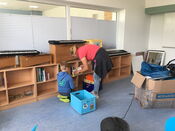 vor und nach den Ferien hat sich so einiges auf unserer Baustelle getan: Wir konnten den renovierten Klassentrakt beziehen, der alte Trakt mit Aula, Lehrerzimmer und Musikraum wurde abgerissen und derzeit laufen die Vorbereitungen für den Bau der Mensa, Aula, des Musikraumes und unserer Parkplätze. Wir möchten Ihnen an dieser Stelle noch ein paar Eindrücke von unserem Umzug Anfang Juli nachreichen.