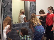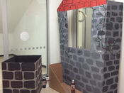 sie Schülerinnen der 4b bauen Kulissen für das Theaterstück „Frau Holle“. Dies wird auf der Abschlussfeier der 4. Klassen und auf der Einschulung aufgeführt.